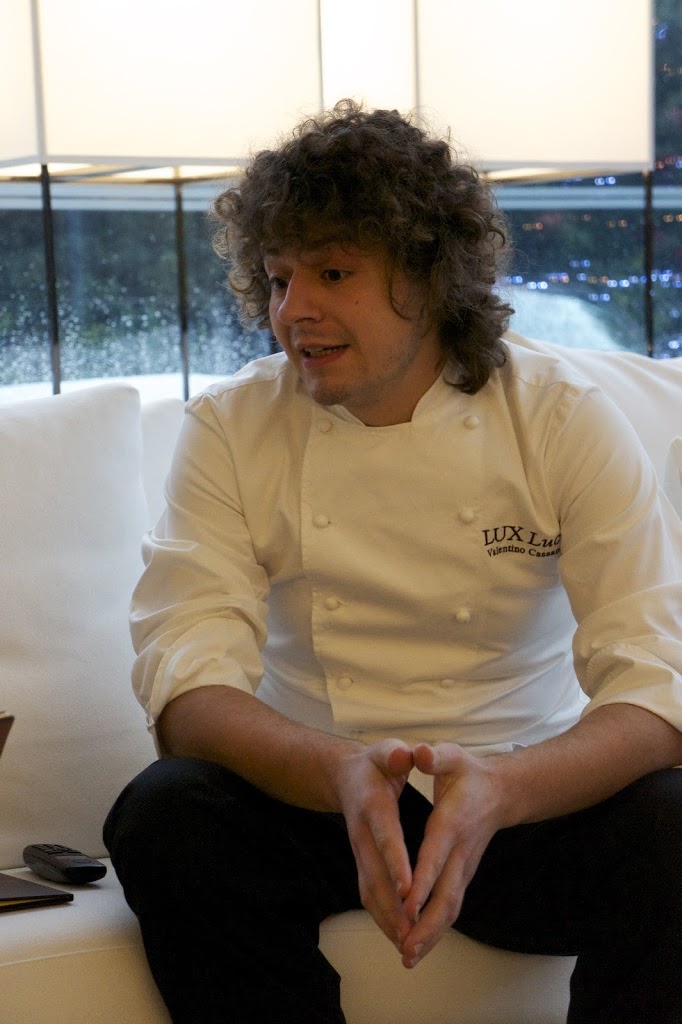 Valentino, 28 anni appena compiuti, Modenese doc, dice di non aver avuto un ispiratore in famiglia, una nonna o una zia, che lo hanno spinto verso questa strada. Ma poi raccontando delle domeniche in cui si preparavano in casa i tortellini o i ravioli, come una prassi normale, si intuisce che l’ambiente opera senza che se ne abbia una precisa consapevolezza. E quello che per tanti è un’arte o perlomeno una dote peculiare, per molti come lui è solo “la normalità”. Dopo gli studi si spinge mosso da curiosità e passione (i motori del mondo!) fino a Londra, dove lavora nella trattoria di lusso “Locanda Locatelli”e poi ancora al NOBU sempre di Londra per approdare infine a Milano da Carlo Cracco.