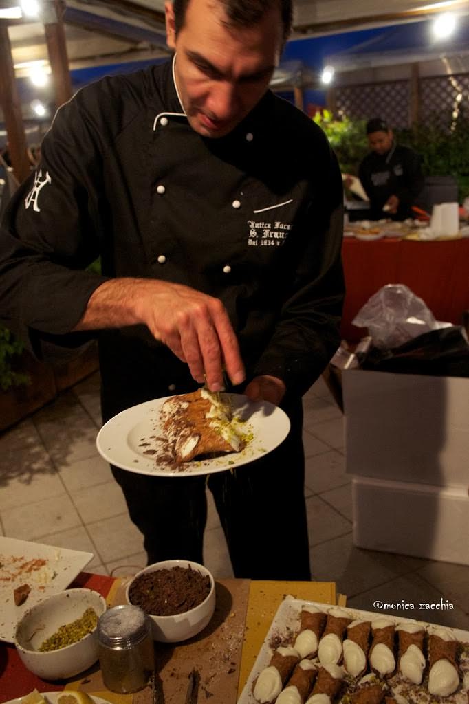 Ecco qui l’infaticabile e serafico pasticcere prepara i cannoli,