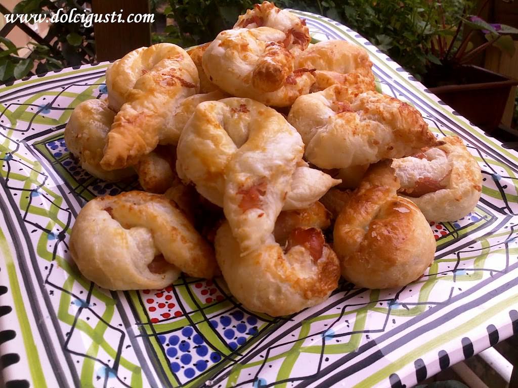 Croissant salati una pasta sfoglia ripiena di prosciutto cotto e parmigiano reggiano pronti in 20 minuti per un antipasto sfizioso da abbinare al vino di Ischia.