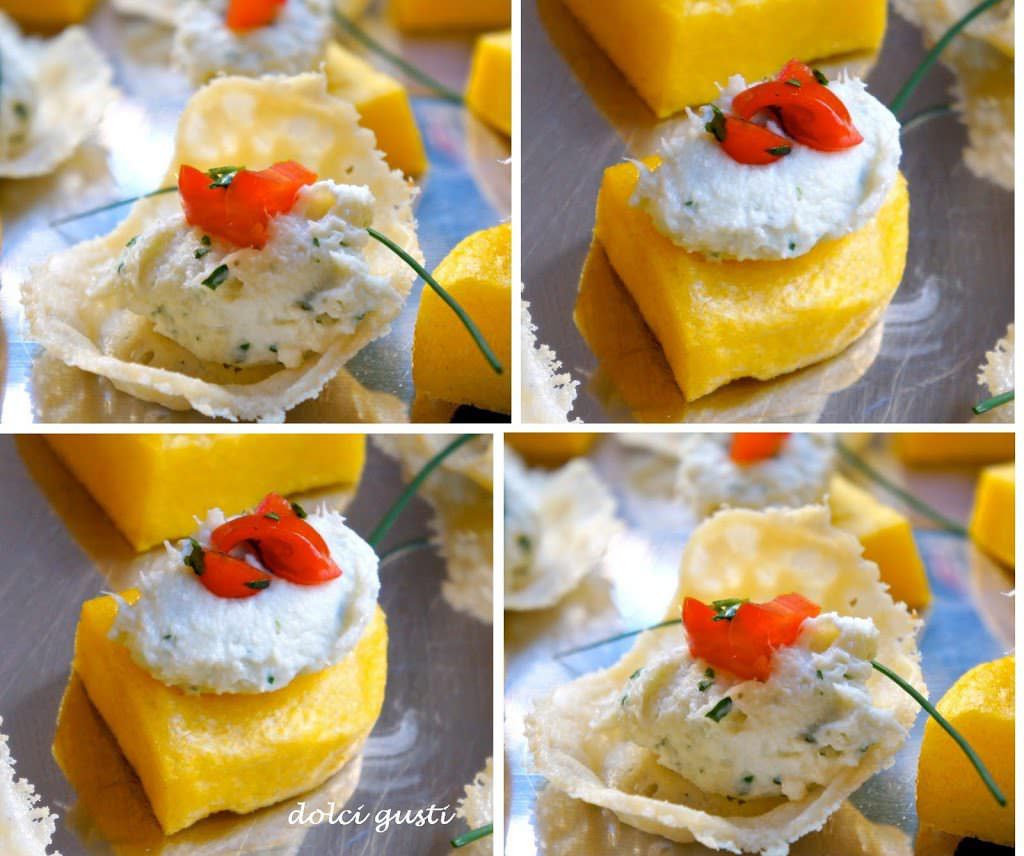Mousse di baccalà su polentine e coupelle di parmigiano