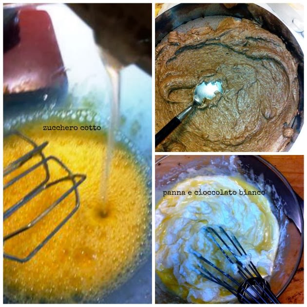 Nel frattempo preparate il semifreddo al cioccolato alla nocciola: Stesso procedimento. Riponete in congelatore. Preparate allo stesso modo il semifreddo al cioccolato bianco. E fate riposare il dolce in congelatore per 3-4 ore.