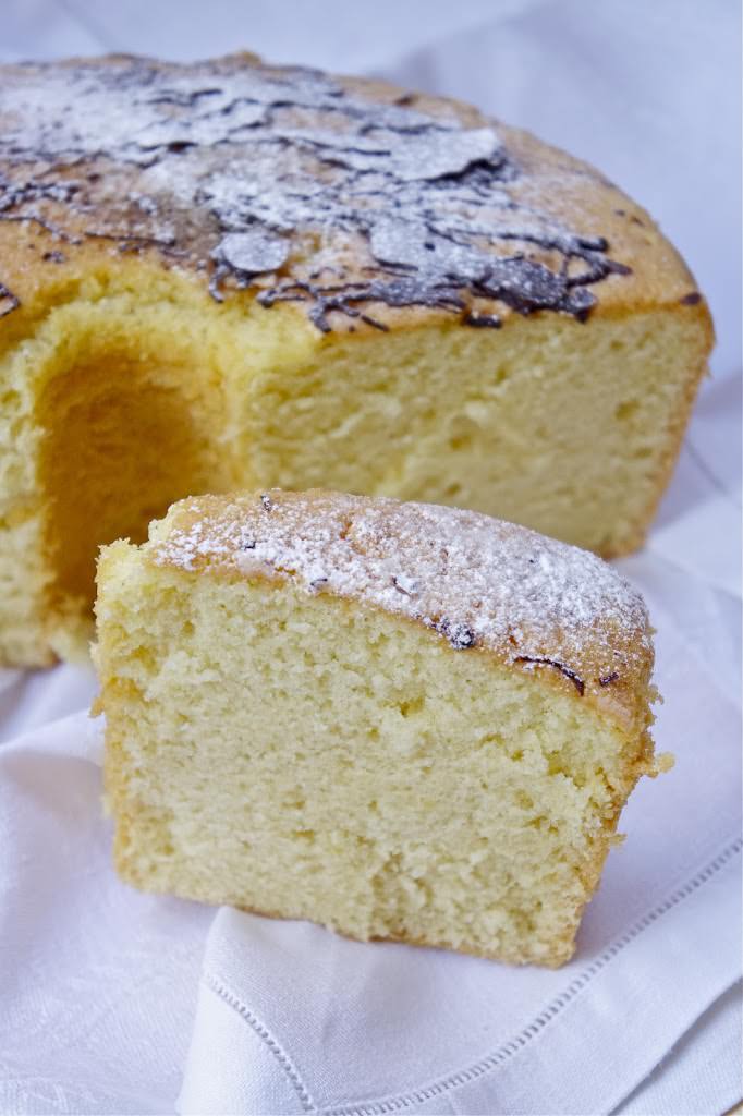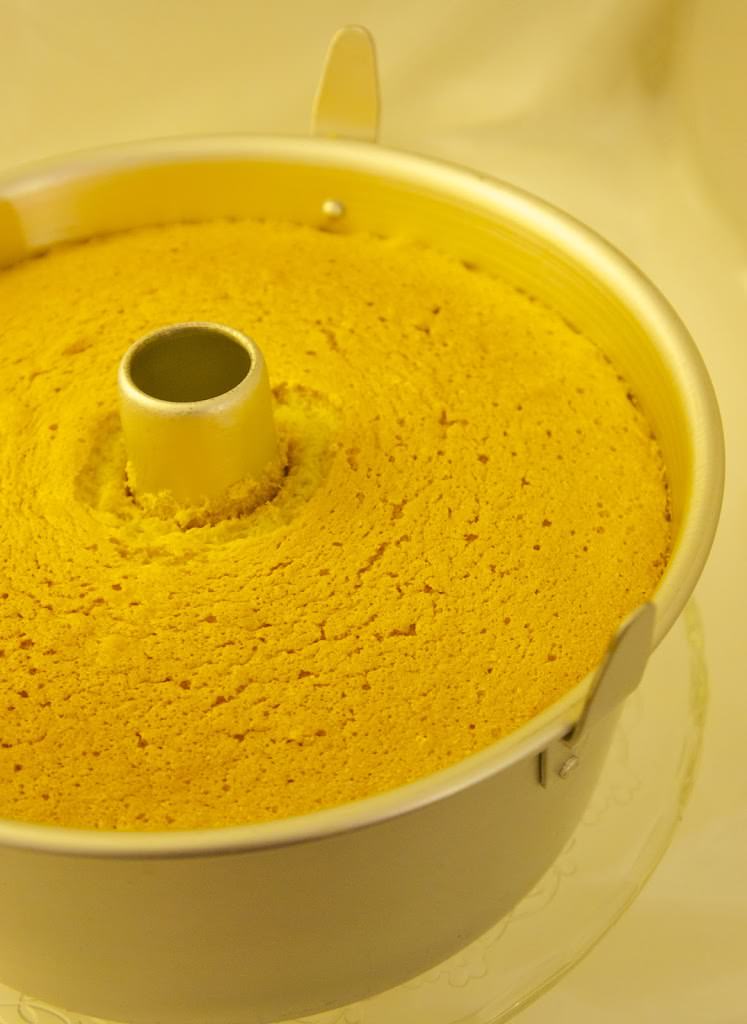 Mescolate gli ingredienti nella ciotola fino ad ottenere un composto omogeneo; incorporarvi con delicatezza gli albumi a neve. Versate nello stampo senza ungerlo né infarinarlo. Infornate e cuocete a 165° per 55 minuti e poi a 175° per 10 minuti. Vale la prova stecchino. Togliete il dolce fate raffreddare capovolto (qui ho avuto molta paura, ma è andata bene come per lo chiffon cake). Passate un coltello intorno ai bordi, sformatelo e inondatelo di zucchero a velo o cioccolato.